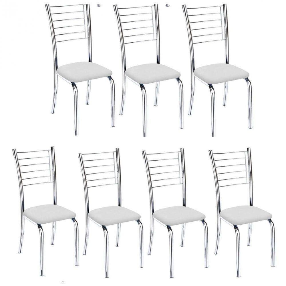 Kit 7 Cadeiras De Jantar Lara Cromada Para Cozinha Assento Corino Branco - Aurora Line