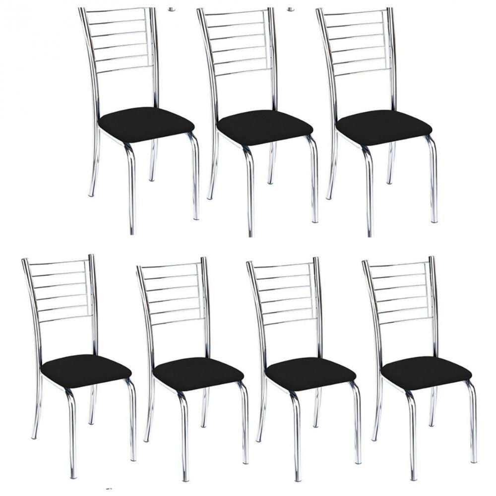 Kit 7 Cadeiras De Jantar Lara Cromada Para Cozinha Assento Sintético Preto - Aurora Line