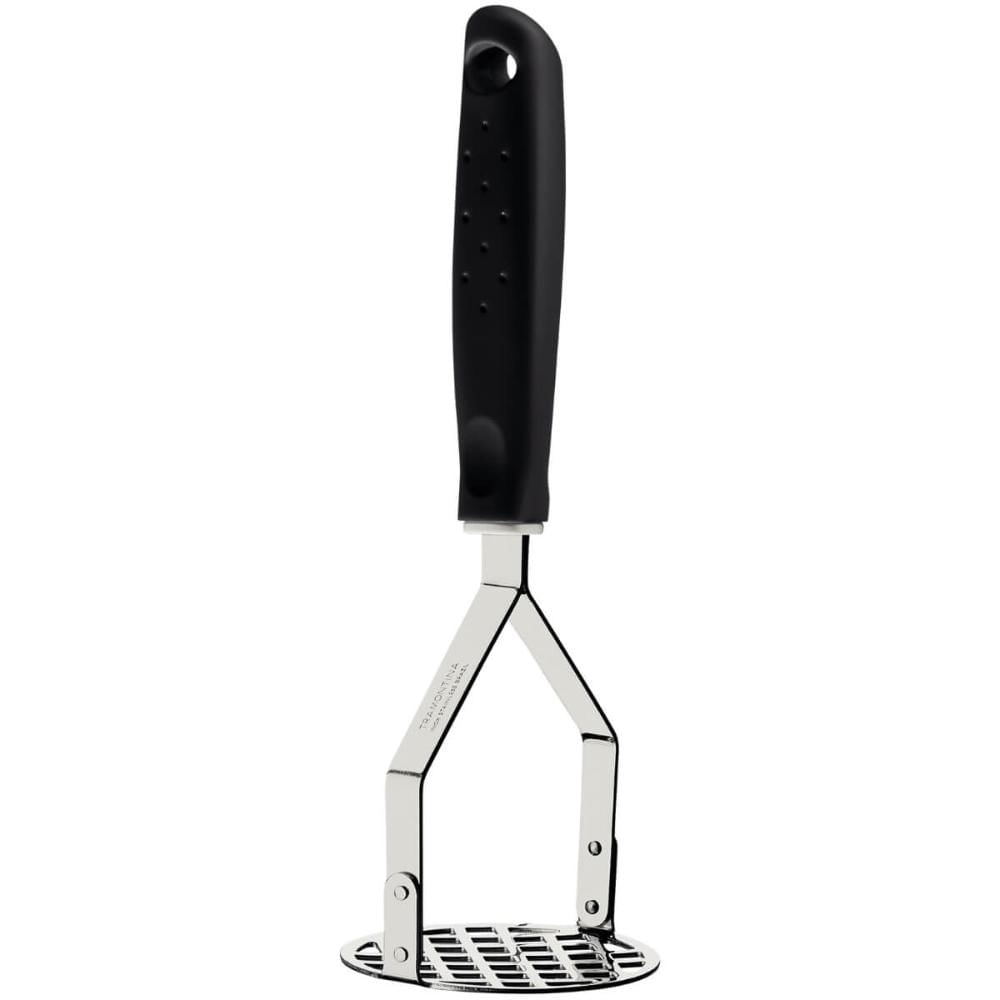 Garantia: 90 dias / Peso de cada: 110g / Cor: preto / Ref: 7794465436384; Dimensões de cada: 23,8cm (C) x 8,3cm (L) x 7,9cm (A); Materiais: aço inox e polipropileno (PP); Conteúdo: 8 amassadores de batatas.