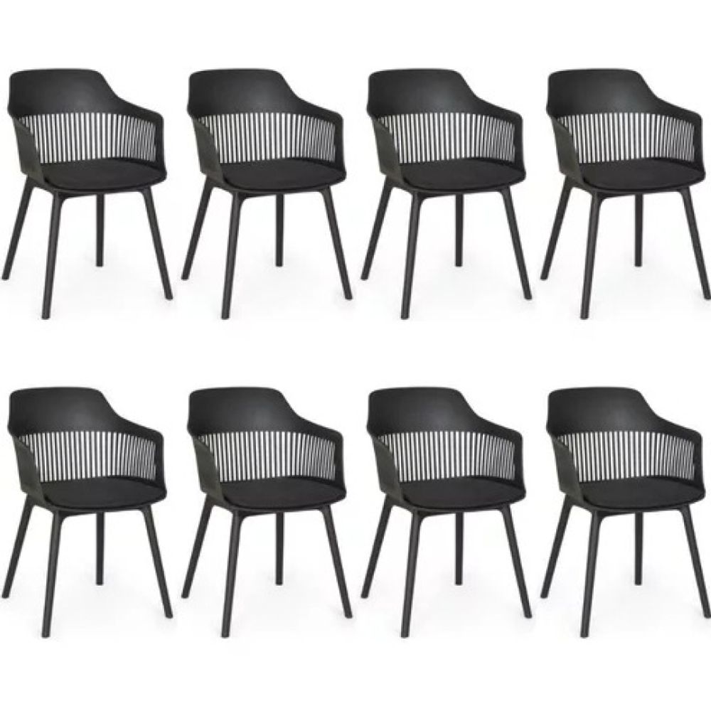 Kit 8 Cadeira Marcela Montreal Em Polipropileno Assento Estofado Preto