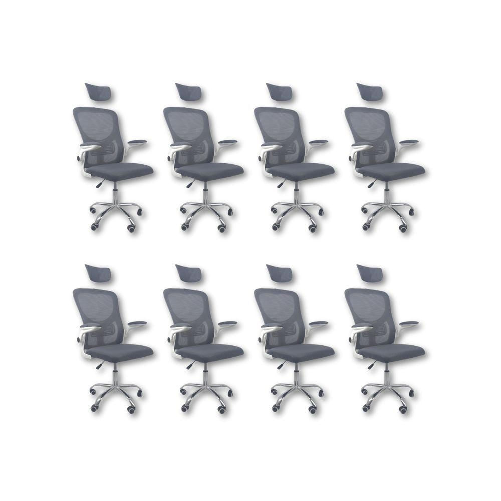 Kit 8 Cadeiras De Escritório Diretor Oficial Vegas Com Apoio Cinza E Branco