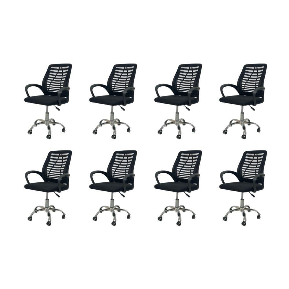 Kit 8 Cadeiras De Escritório Esteirinha Mesh Ergonômica Giratória Preto