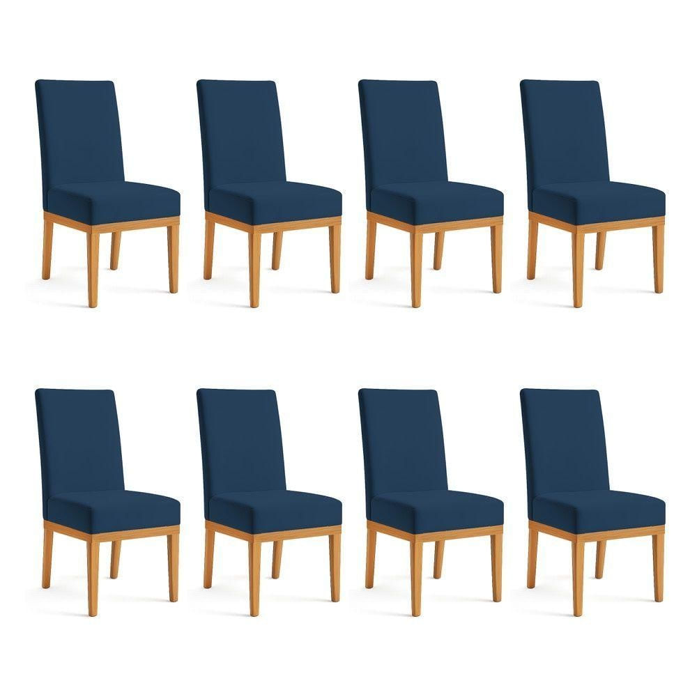 Kit 8 Cadeiras De Jantar Brisa Veludo Base De Madeira - Pallazio Cor Azul Marinho