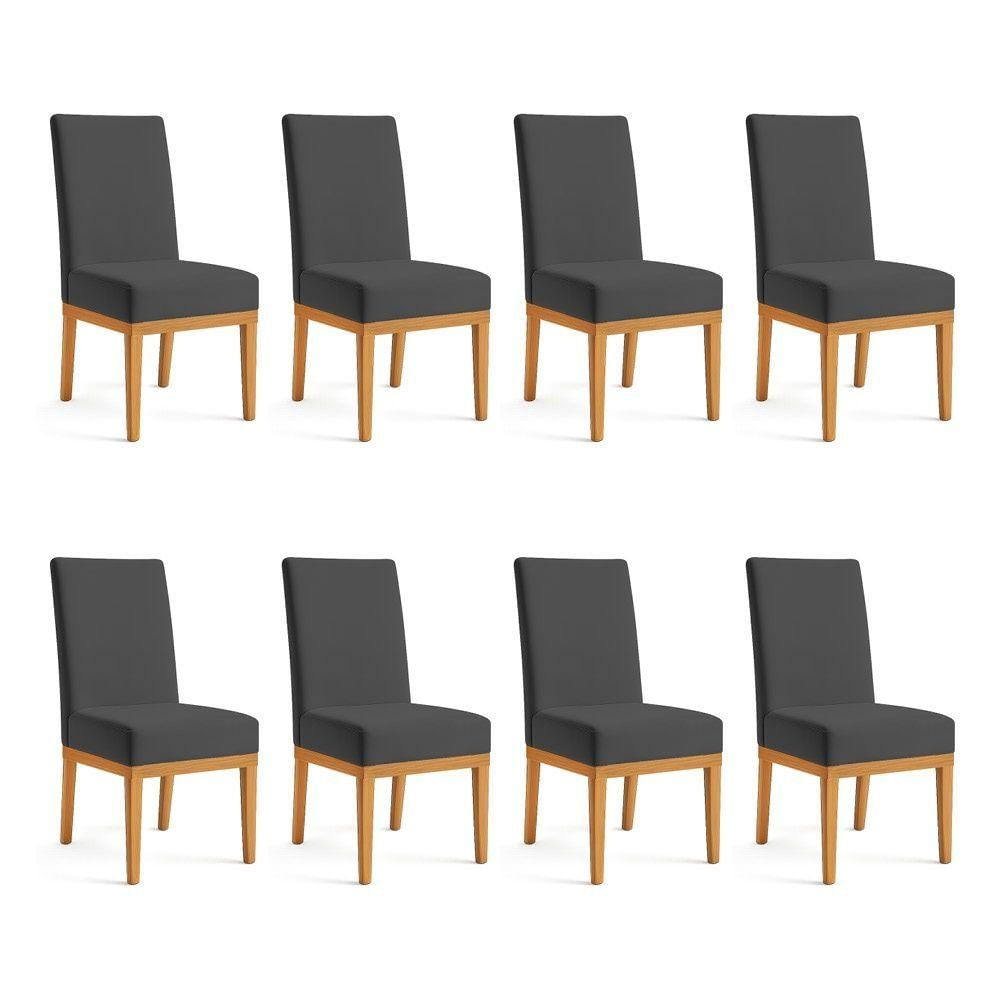 Kit 8 Cadeiras De Jantar Brisa Veludo Base De Madeira - Pallazio Cor Grafite