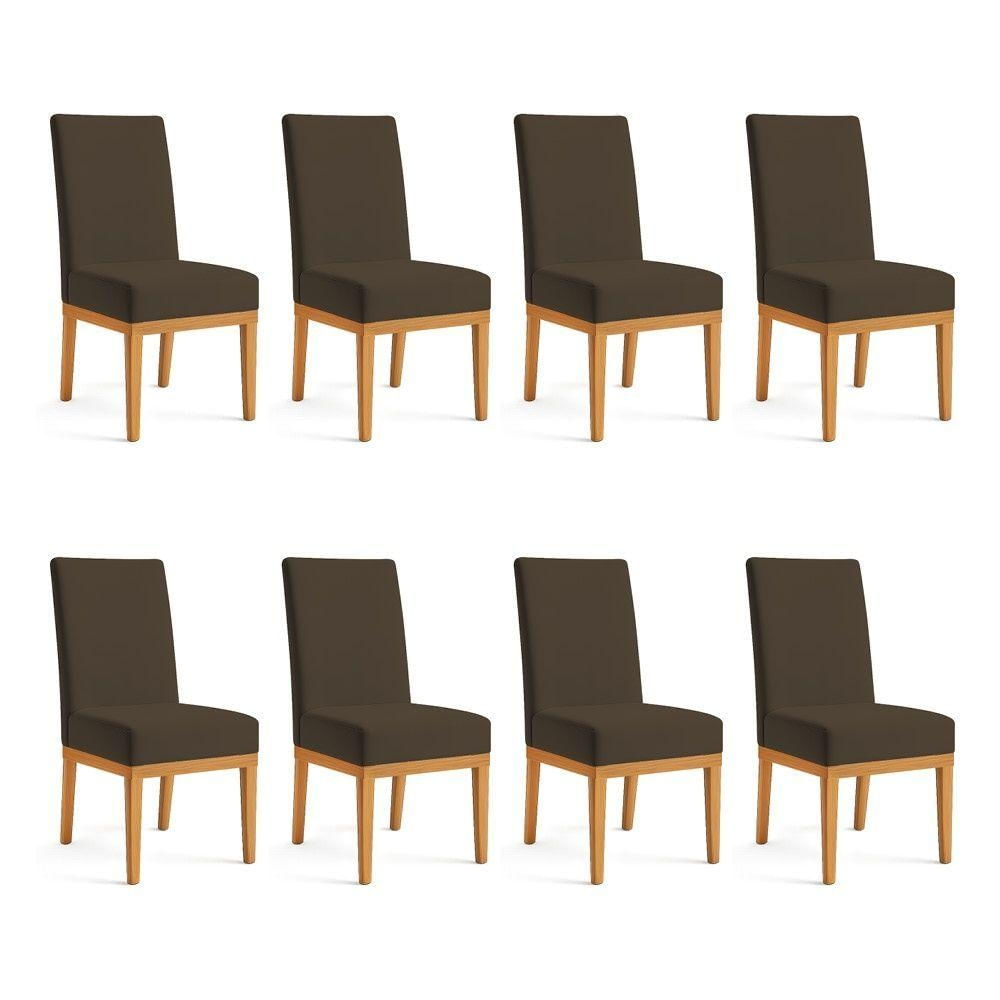 Kit 8 Cadeiras De Jantar Brisa Veludo Base De Madeira - Pallazio Cor Marrom