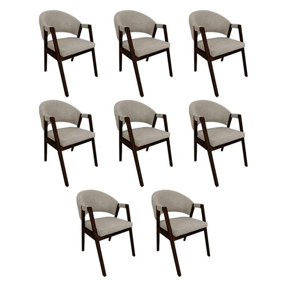 Kit 8 Cadeiras De Jantar Madeira Maciça Helen Impermeável Castanho Bege Linho