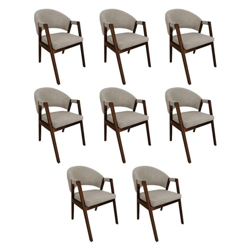 Kit 8 Cadeiras De Jantar Madeira Maciça Helen Impermeável Mel Bege Linho