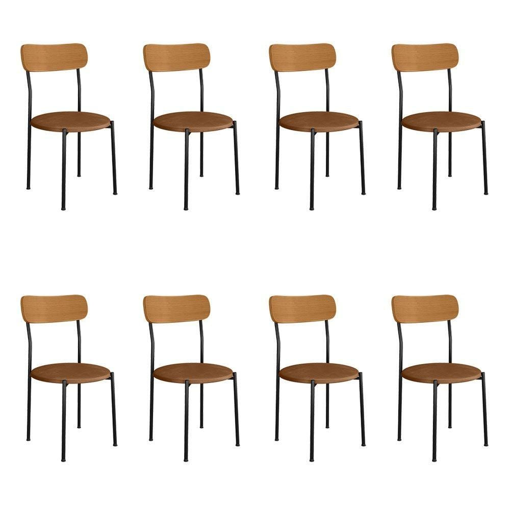 Kit 8 Cadeiras De Jantar Renata Encosto Verniz E Assento Camel Ferro Preto - Pallazio