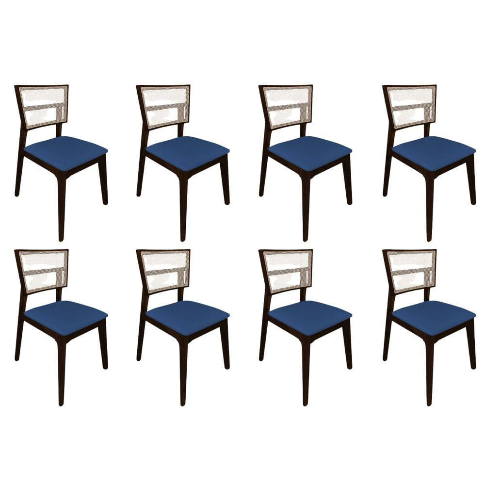 Kit 8 Cadeiras De Jantar Tela Premium Madeira Maciça Manuela Azul Veludo Castanho