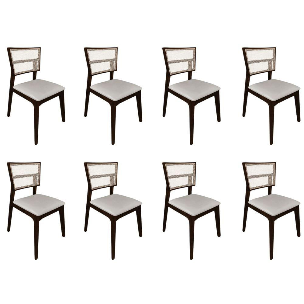Kit 8 Cadeiras De Jantar Tela Premium Madeira Maciça Manuela Bege Veludo Castanho