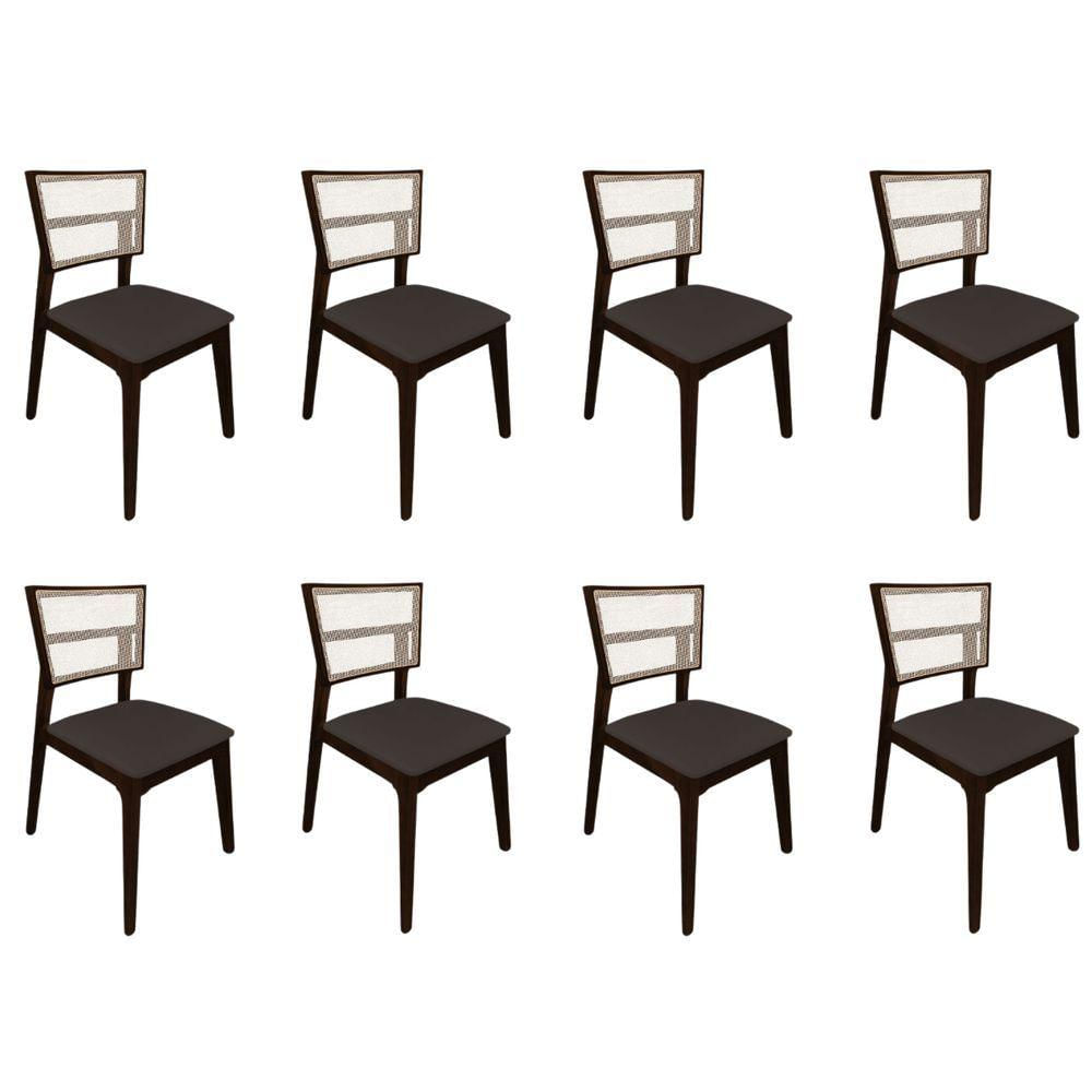 Kit 8 Cadeiras De Jantar Tela Premium Madeira Maciça Manuela Marrom Veludo Castanho