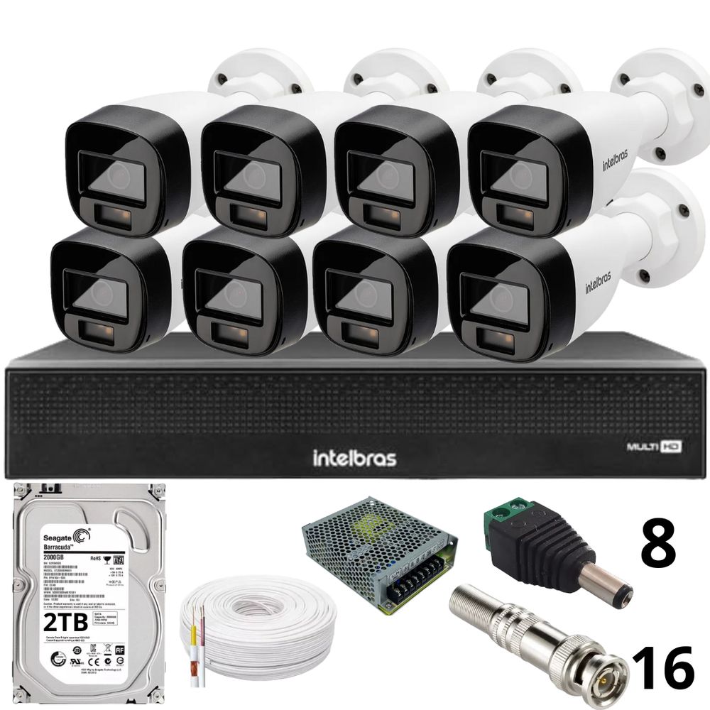 Kit 8 Câmeras Intelbras 1120b Full Color Dvr Mhdx 1016-c Intelbras Com Detecção De Movimentos Hd 2Tb