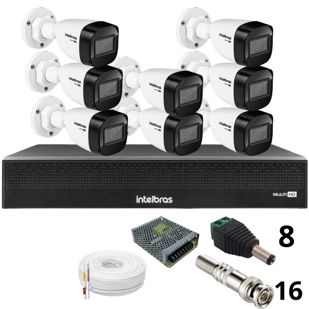 Kit 8 Câmeras Intelbras 1130b Full Hd Dvr Mhdx 1016-c Intelbras Com Detecção De Movimentos Sem Hd
