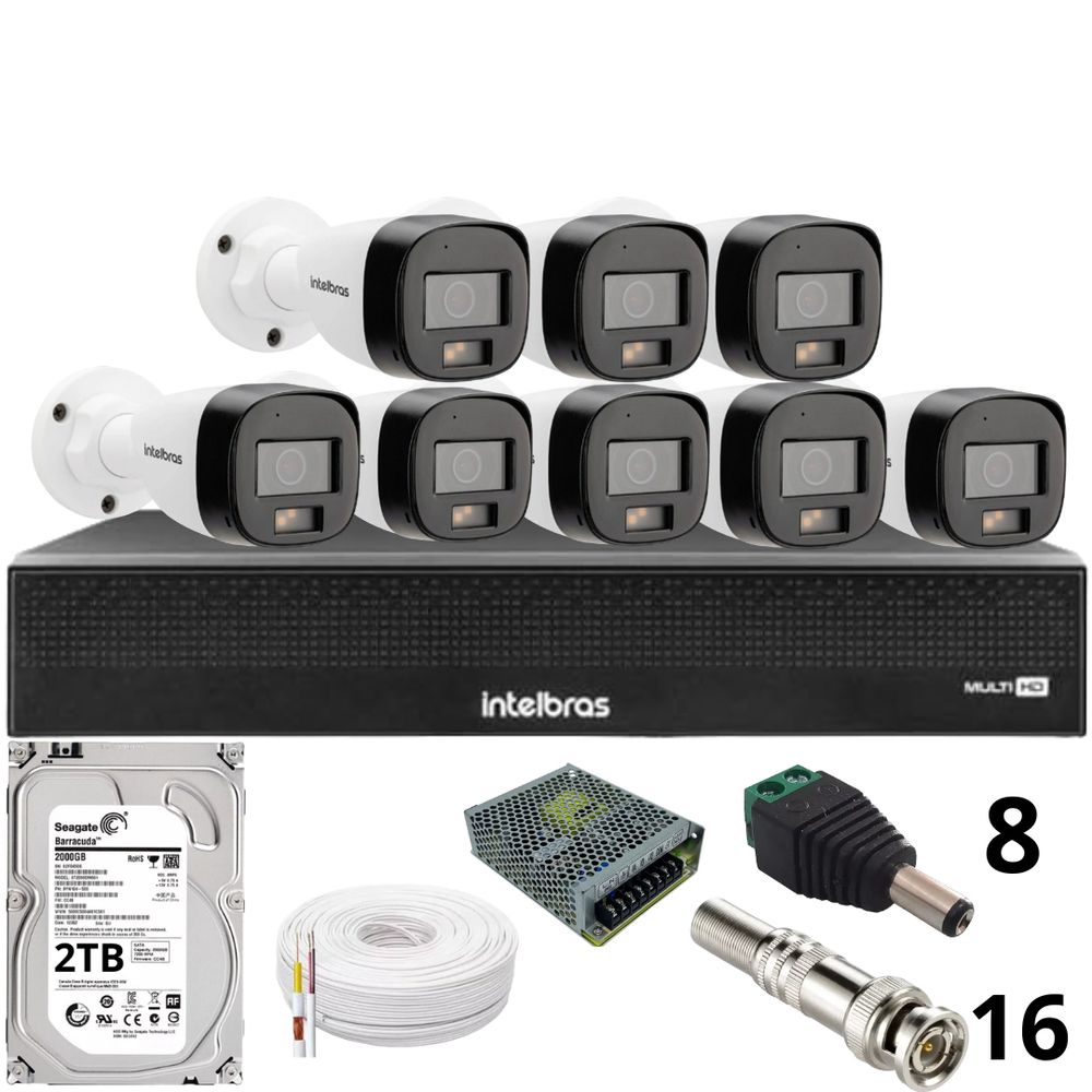 Kit 8 Câmeras Intelbras 3220b Full Color Com Áudio Dvr Mhdx 1016-c Intelbras Com Detecção De Movimentos Hd 2tb