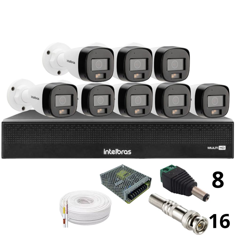Kit 8 Câmeras Intelbras 3220b Full Color Com Áudio Dvr Mhdx 1016-c Intelbras Com Detecção De Movimentos Sem Hd