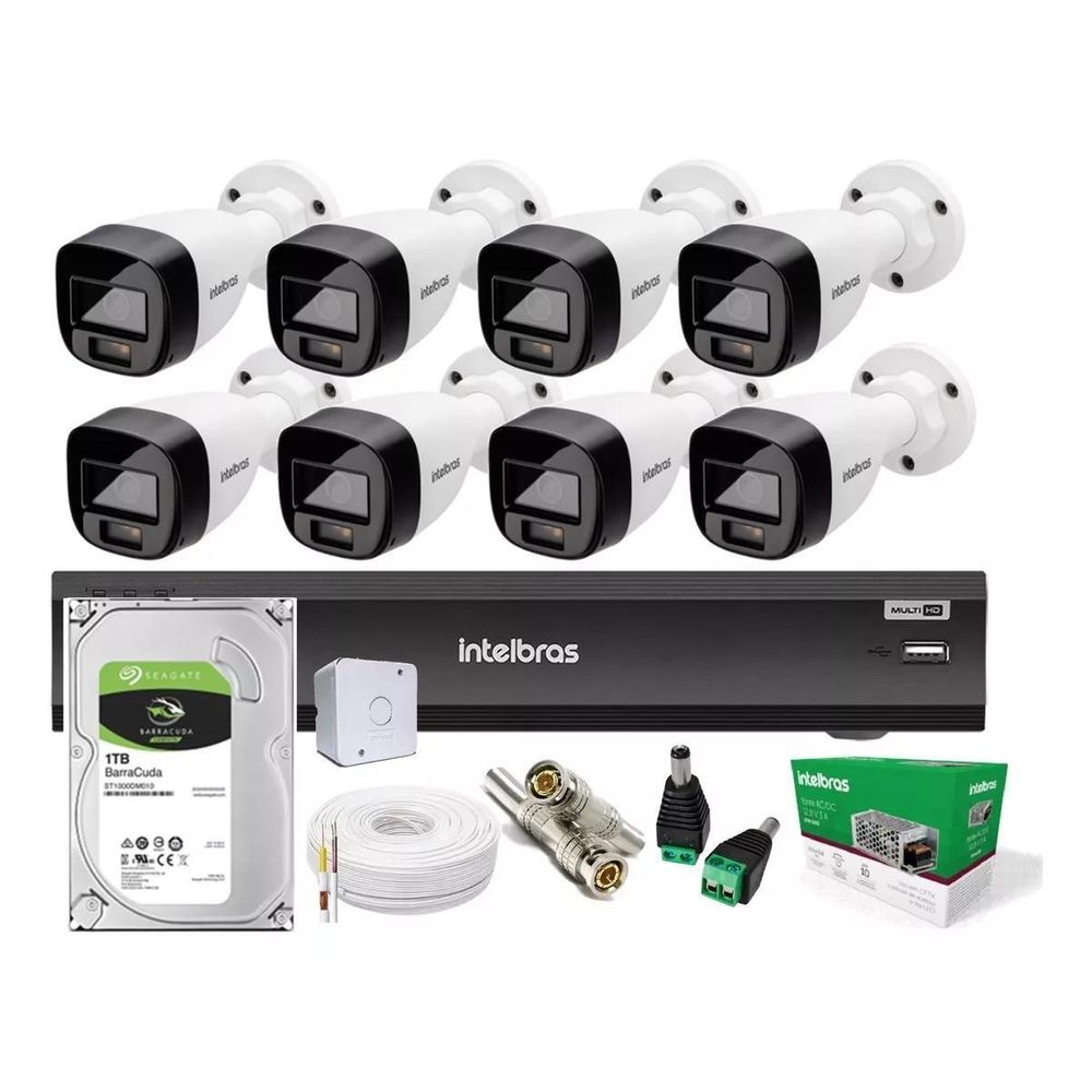 Kit 8 Cameras Seguranca Intelbras 3220 Full Color C/ Audio, Dvr 8ch Imhdx 3008 C/ Hd 1tb