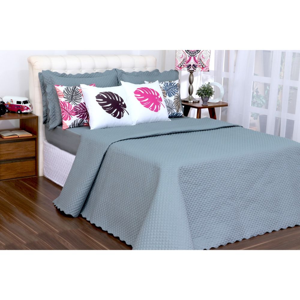 Kit 8 Peças Cobre Leito Queen Casal com Lençol de Elástico Porta Travesseiro e Capas de Almofadas Luxo Decoração Quarto Cinza