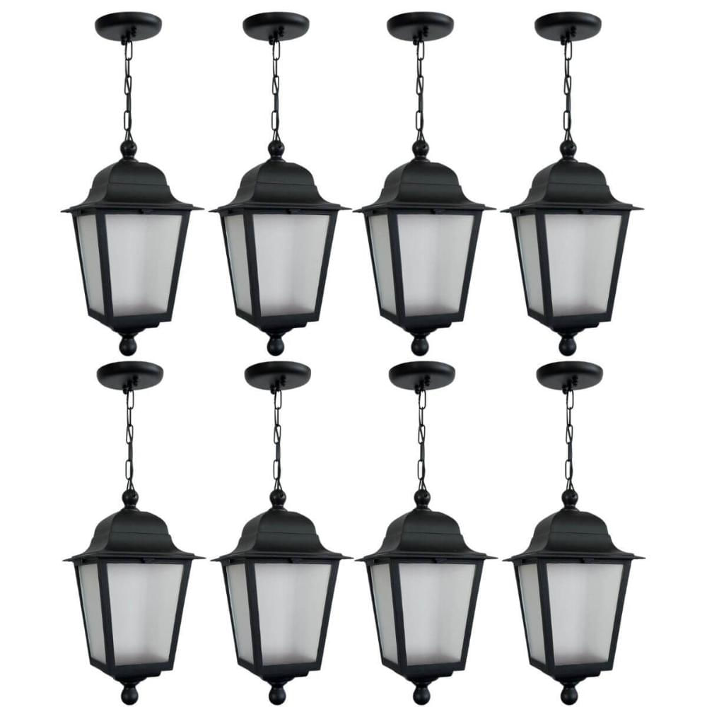 Kit 8 Pendentes Luminárias de Teto Bivolt Termoplástico Preto 21x58cm Lente Fosca Dital Área Gourmet Garagens Bivolt