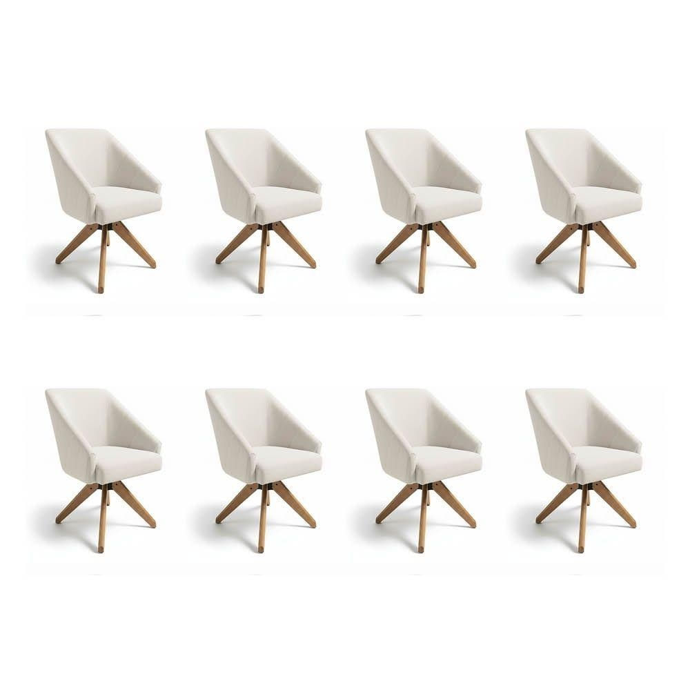 Kit 8 Poltronas Giratórias Alana Bouclê Base De Madeira - Pallazio Cor Bege
