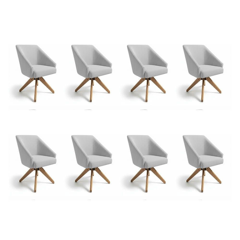 Kit 8 Poltronas Giratórias Alana Bouclê Base De Madeira - Pallazio Cor Cinza