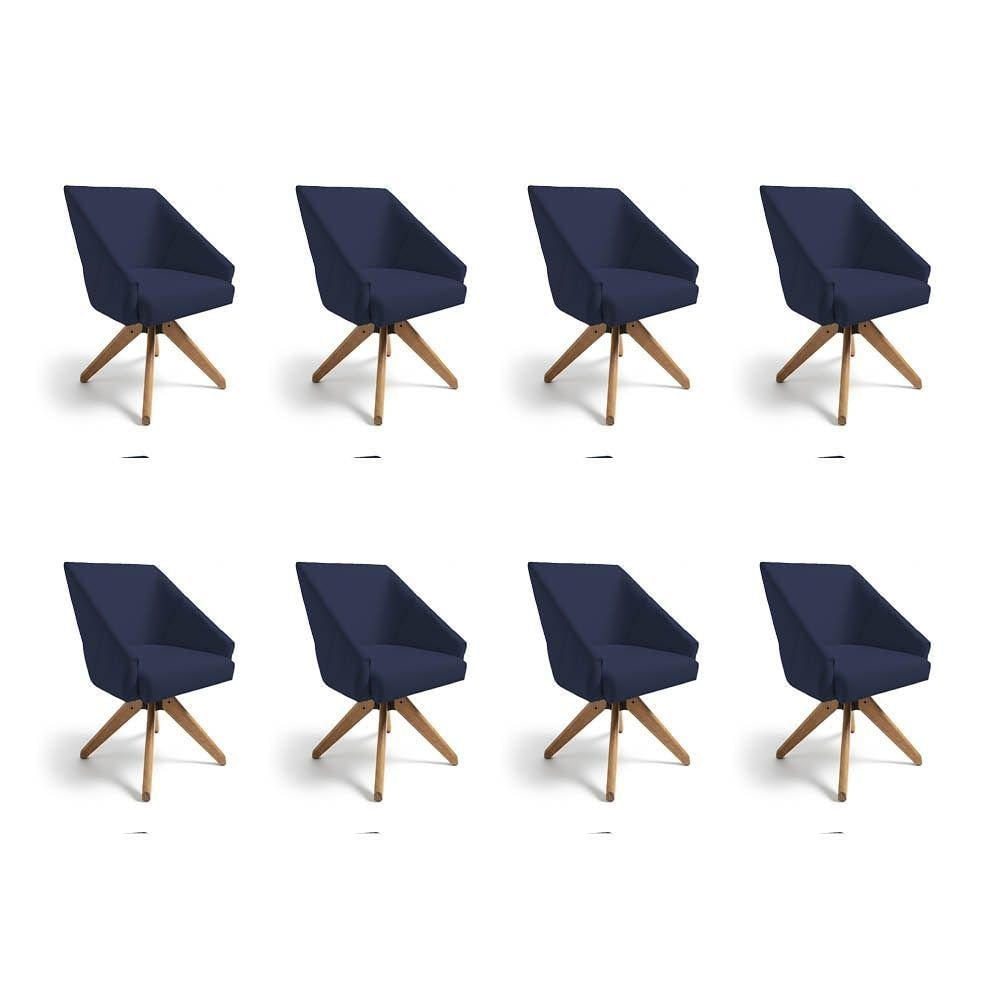 Kit 8 Poltronas Giratórias Alana Suede Base De Madeira - Pallazio Cor Azul Marinho