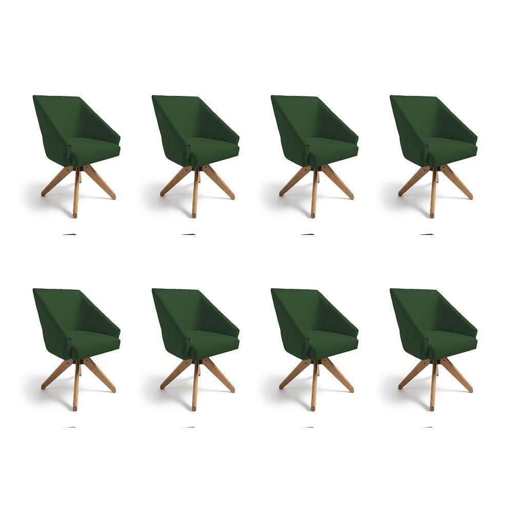 Kit 8 Poltronas Giratórias Alana Suede Base De Madeira - Pallazio Cor Verde