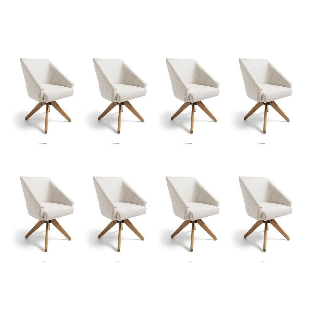 Kit 8 Poltronas Giratórias Alana Veludo Base De Madeira - Pallazio Cor Bege