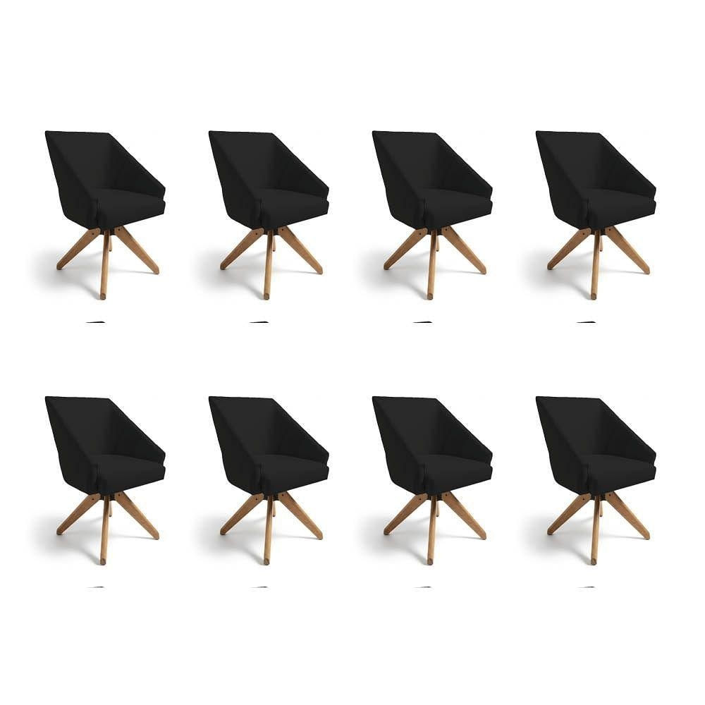 Kit 8 Poltronas Giratórias Alana Veludo Base De Madeira - Pallazio Cor Preto