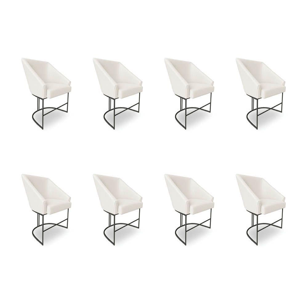 Kit 8 Poltronas Luxo Alana Bouclê Bege Base Ferro Preto - Pallazio