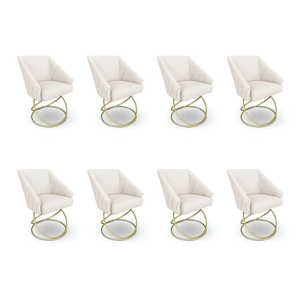 Kit 8 Poltronas Luxo Alana Bouclê Bege Base Luxo Dourado - Pallazio