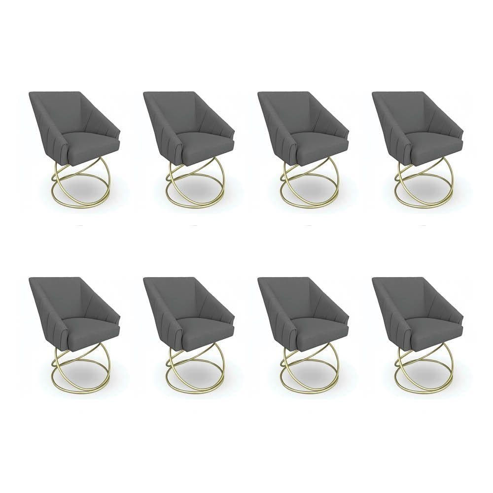 Kit 8 Poltronas Luxo Alana Linho Base Luxo Dourado - Pallazio Cor Grafite