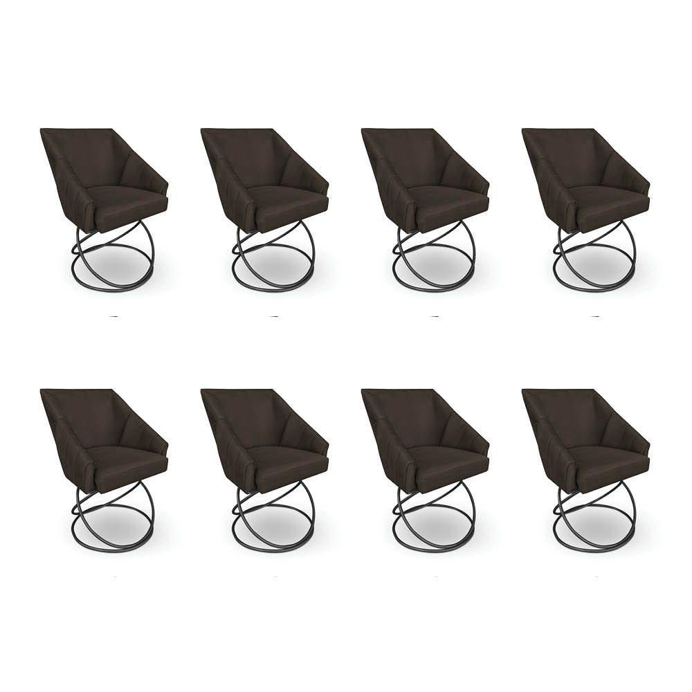 Kit 8 Poltronas Luxo Alana Suede Marrom Base Luxo Preto - Pallazio