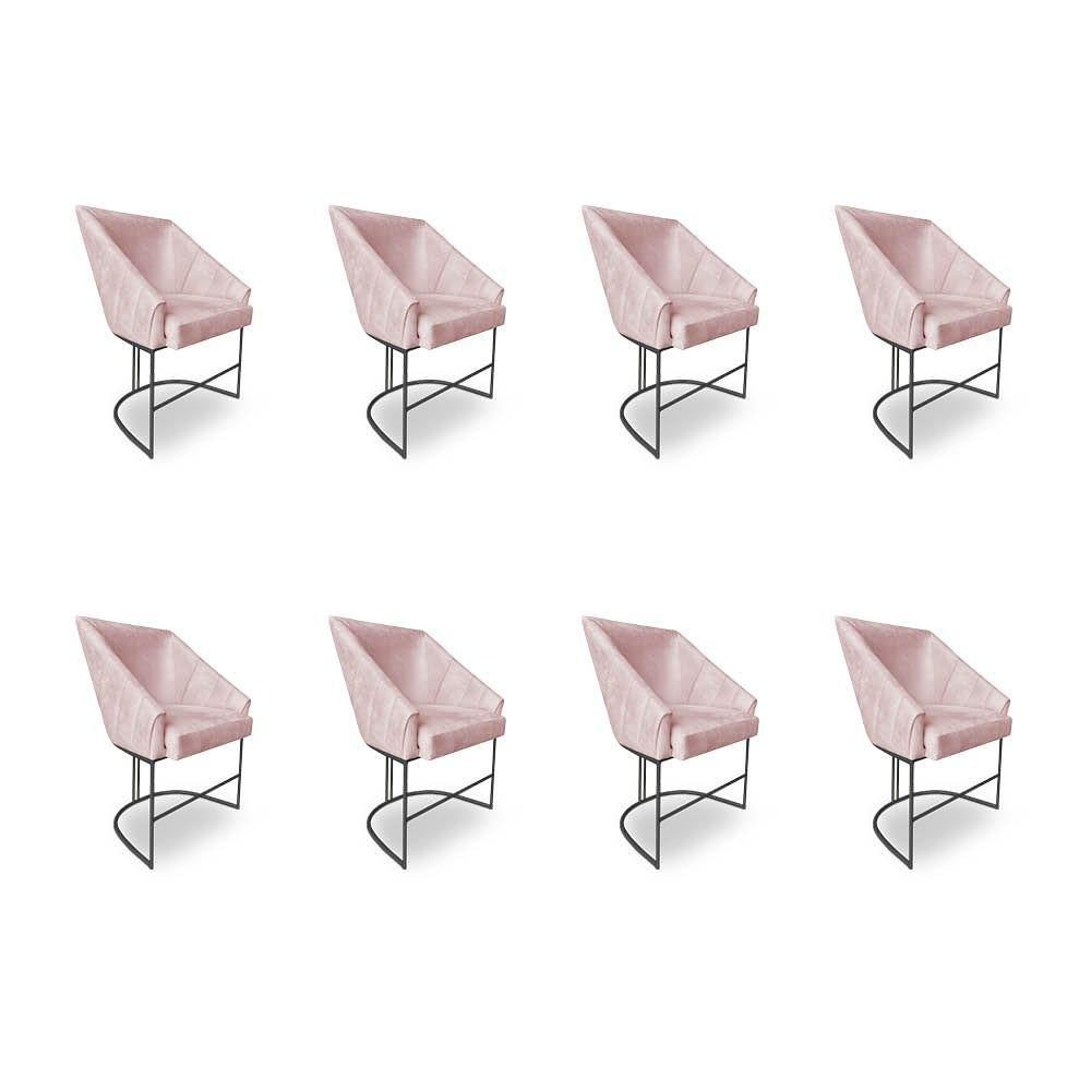 Kit 8 Poltronas Luxo Alana Suede Rosa Bebê Base Ferro Preto - Pallazio