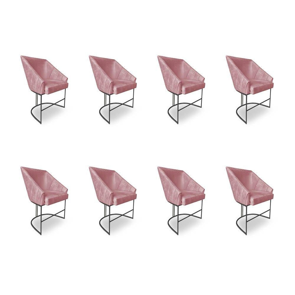 Kit 8 Poltronas Luxo Alana Veludo Base Ferro Preto - Pallazio Cor Rosê