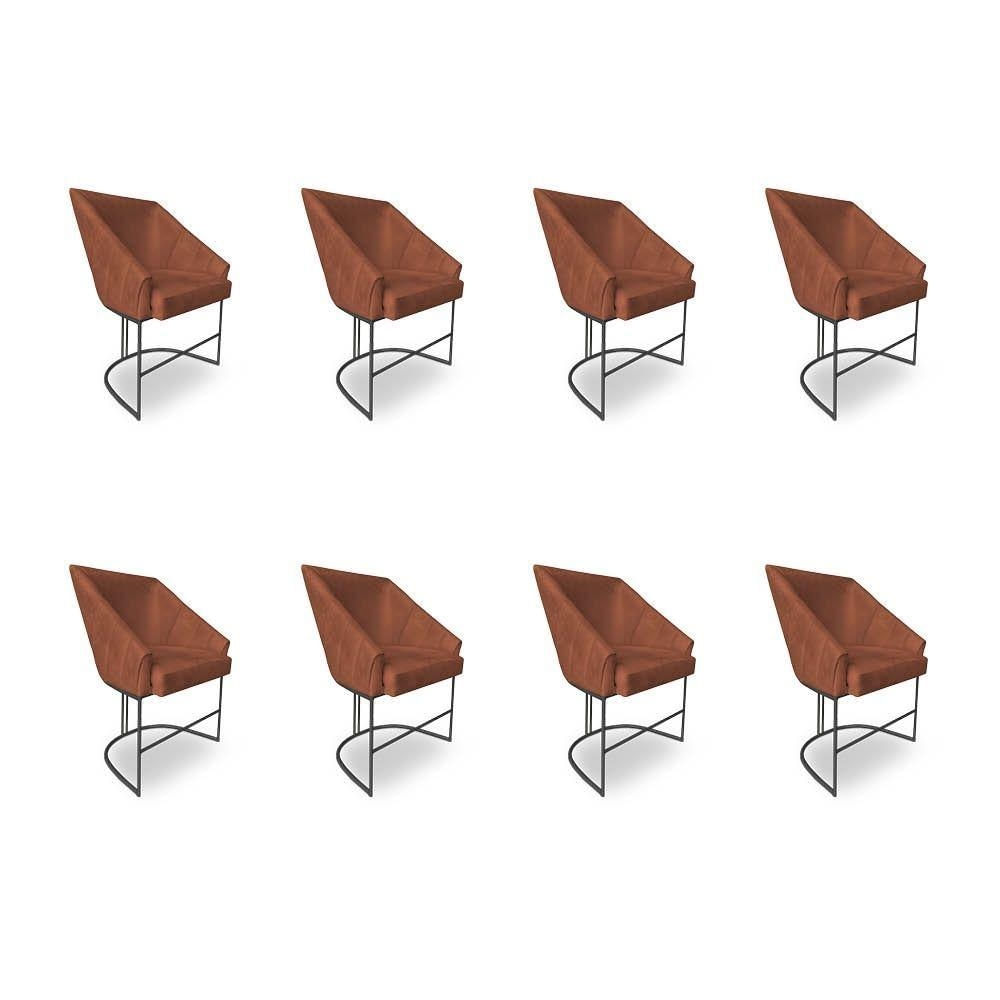 Kit 8 Poltronas Luxo Alana Veludo Base Ferro Preto - Pallazio Cor Terracota