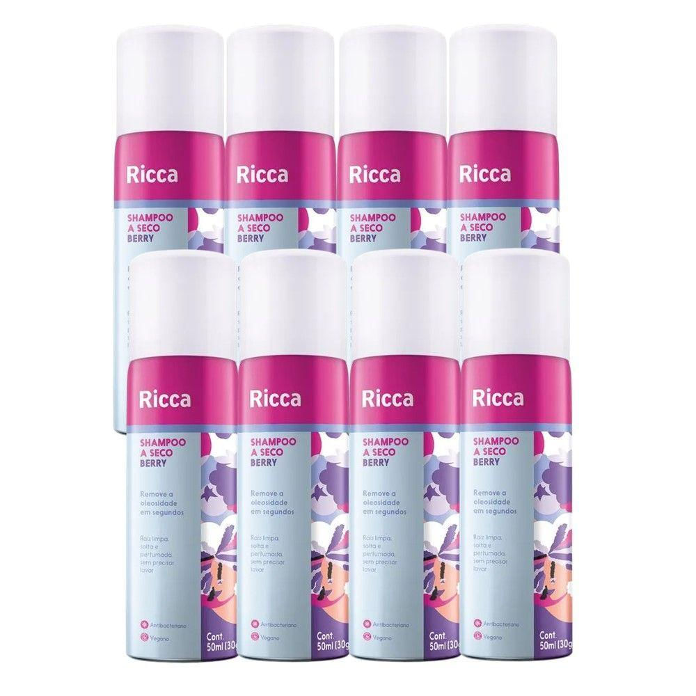 Kit 8 Shampoo A Seco Ricca De Bolso Remove Oleosidade Berry 50ml