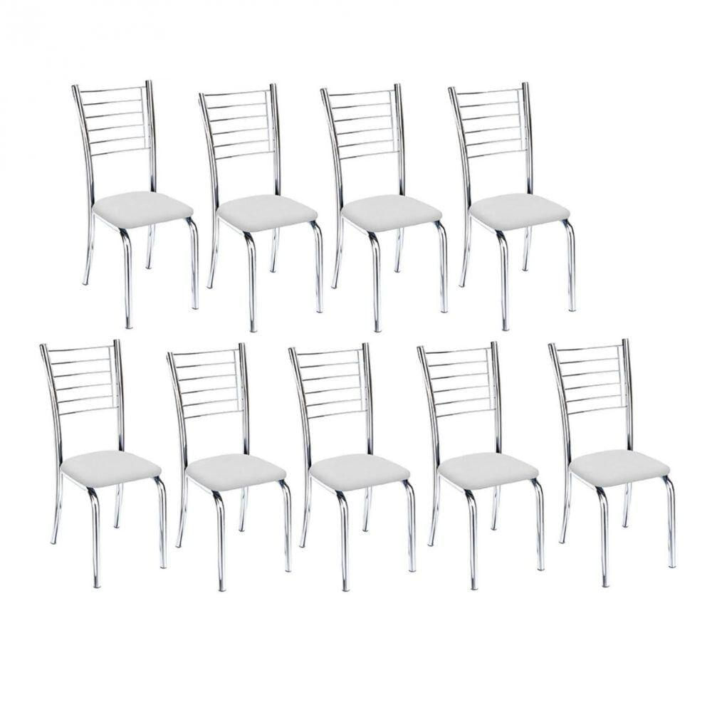 Kit 9 Cadeiras De Jantar Lara Cromada Para Cozinha Assento Corino Branco - Aurora Line