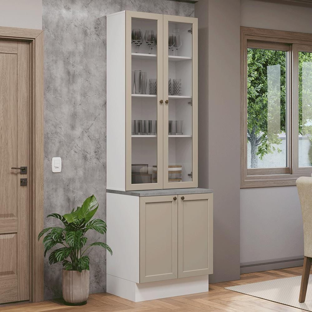 Garantia: Este produto conta com 1 ano de garantia total, sendo 3 meses de garantia legal e 9 meses de garantia contratual. A garantia cobre exclusivamente defeitos de fabricação e vícios ocultos. Não estão cobertos: problemas decorrentes de montagem incorreta, uso inadequado, exposição à umidade, calor ou luz solar direta, modificações no produto ou desgaste natural. Bege | Garantia: 12 meses | Dimensões - Altura: 225 cm | Dimensões - Largura: 70 cm | Dimensões - Profundidade: 52 cm | Produto: Cozinha | Marca: Madesa | Material: MDP | Estado de Origem: RS | Conteúdo da embalagem: 1 Cozinha Completa | Material para Filtro: MDP | Instruções/Cuidados: Utilize um pano limpo, levemente umedecido e seque em seguida a superfície. Não usar produtos químicos ou abrasivos para a limpeza. Recomendamos polir seu móvel com lustra-móveis duas a três vezes por ano. | Produto precisa de Montagem?: Sim | Peso Produto Com Embalagem (Kg): 51,85 | Altura do Produto com Embalagem (cm): 31,8 | Largura Produto Com Embalagem (cm): 53,4 | Comprimento Produto Com Embalagem (cm): 146 | Descrição do Tamanho: 225 cm x 70 cm x 52 cm | Nome do Simples no Fornecedor: Kit Balcão + Cristaleira 70 cm Branco/Crema Vik Madesa 02 | Fabricante: Madesa | RBN: Casa/Móveis/Móveis de Quarto | Materiais do corpo: MDP | Quantidade de caixas de embalagem: 5 | Quantidade de portas: 4 | Quantidade de Gavetas: | Bullet Point 1: Dimensões: 225 cm altura x 70 cm largura x 52 cm profundidade | Bullet Point 2: Os puxadores ponto em ouro envelhecido, trazem personalidade e um charme único. | Bullet Point 3: O detalhe das frentes, refletindo o estilo americano com um toque moderno. | Bullet Point 4: Possui acabamento de alta resistência, conservando a beleza do móvel por muito mais tempo. | É Frágil: Não | Quantidade de Itens: 1 | Certificação de teste externa: Sim | Precisa de baterias ou pilhas: Não | Número da peça (part_number): GRVK0700025L | Peso do item (item_weight): value=51.85;unit=kilograms | Dimensões do item P x L x A (item_depth_width_height): depth#value=52;depth#unit=centimeters;height#value=225;height#unit=centimeters;width#value=70;width#unit=centimeters | Exige montagem (is_assembly_required): Sim | Requer montagem (REQUIRES_ASSEMBLY): Sim | Inclui manual de montagem (INCLUDES_ASSEMBLY_MANUAL): Sim | Número do modelo (model_number): GRVK0700025L | is_assembly_required: Sim | Componetes Incluidos: Portas | Linha: Vik | Tipo de móveis de cozinha: Cozinha Completa | Peso aproximado: 52 | Branco/Crema