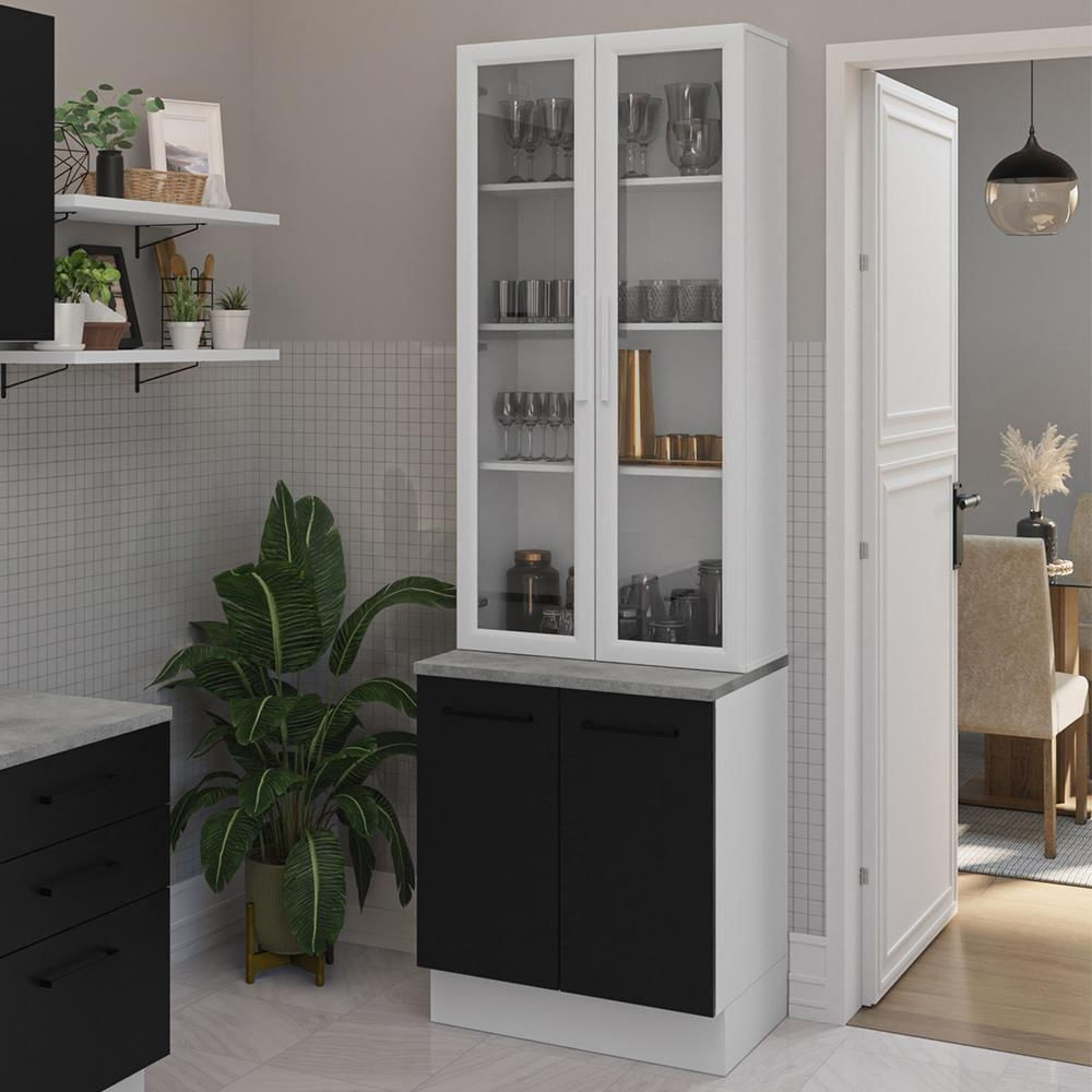 Itens inclusos: - Uma (1) Cristaleira com duas (2) portas - Um (1) Balcão com duas (2) portas e tampo