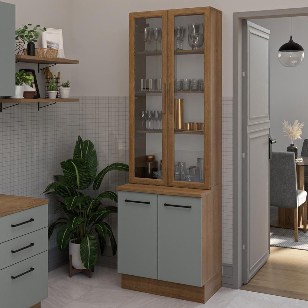 Muito sofisticada, a cristaleira possui duas portas de vidro e amplo espaço interno para acomodar louças, copos e outros itens de forma organizada.