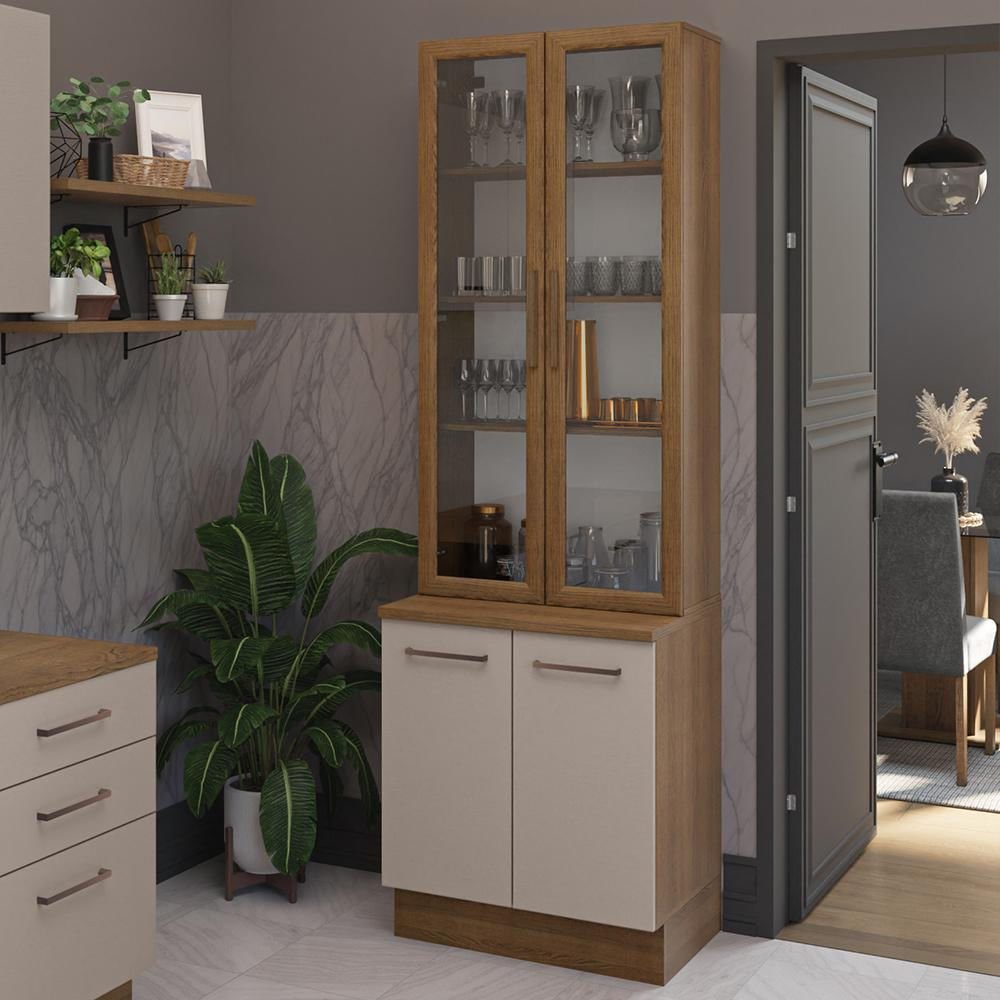 Muito sofisticada, a cristaleira possui duas portas de vidro e amplo espaço interno para acomodar louças, copos e outros itens de forma organizada.