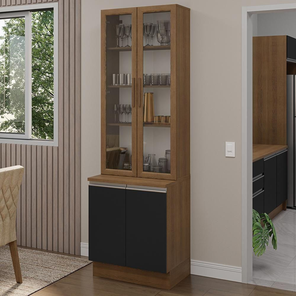 Muito elegante, a cristaleira possui duas portas de vidro e amplo espaço interno para acomodar louças, copos e outros itens de forma organizada.