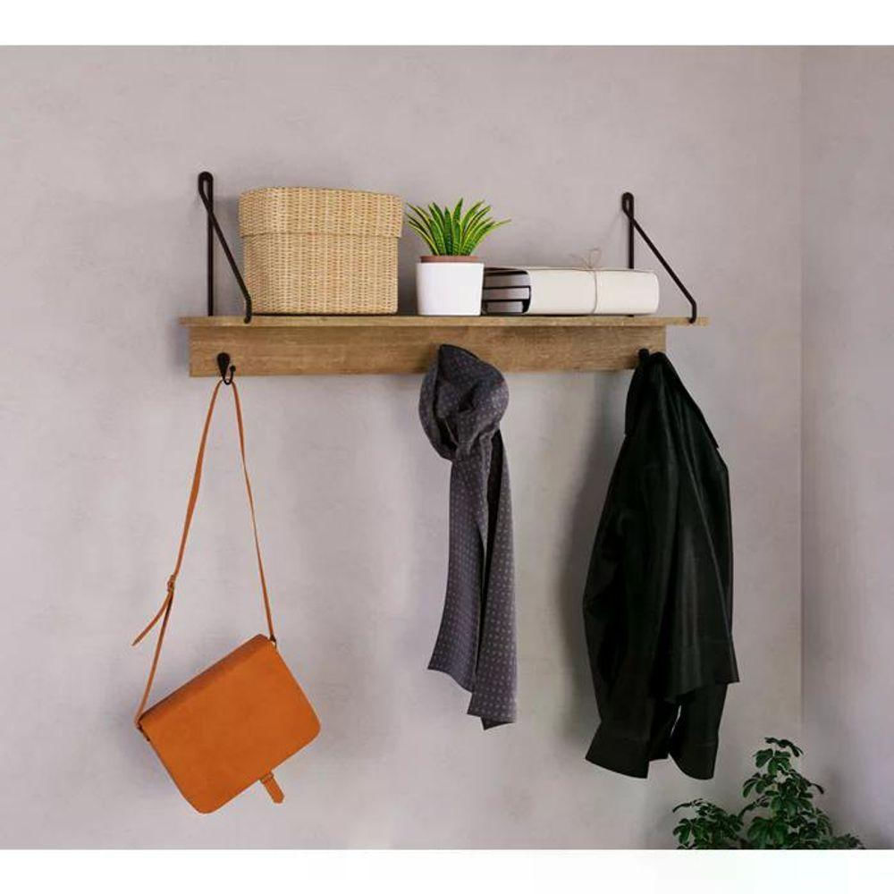 Suporta até 10kg (sendo 7kg na prateleira e 1kg em cada gancho).