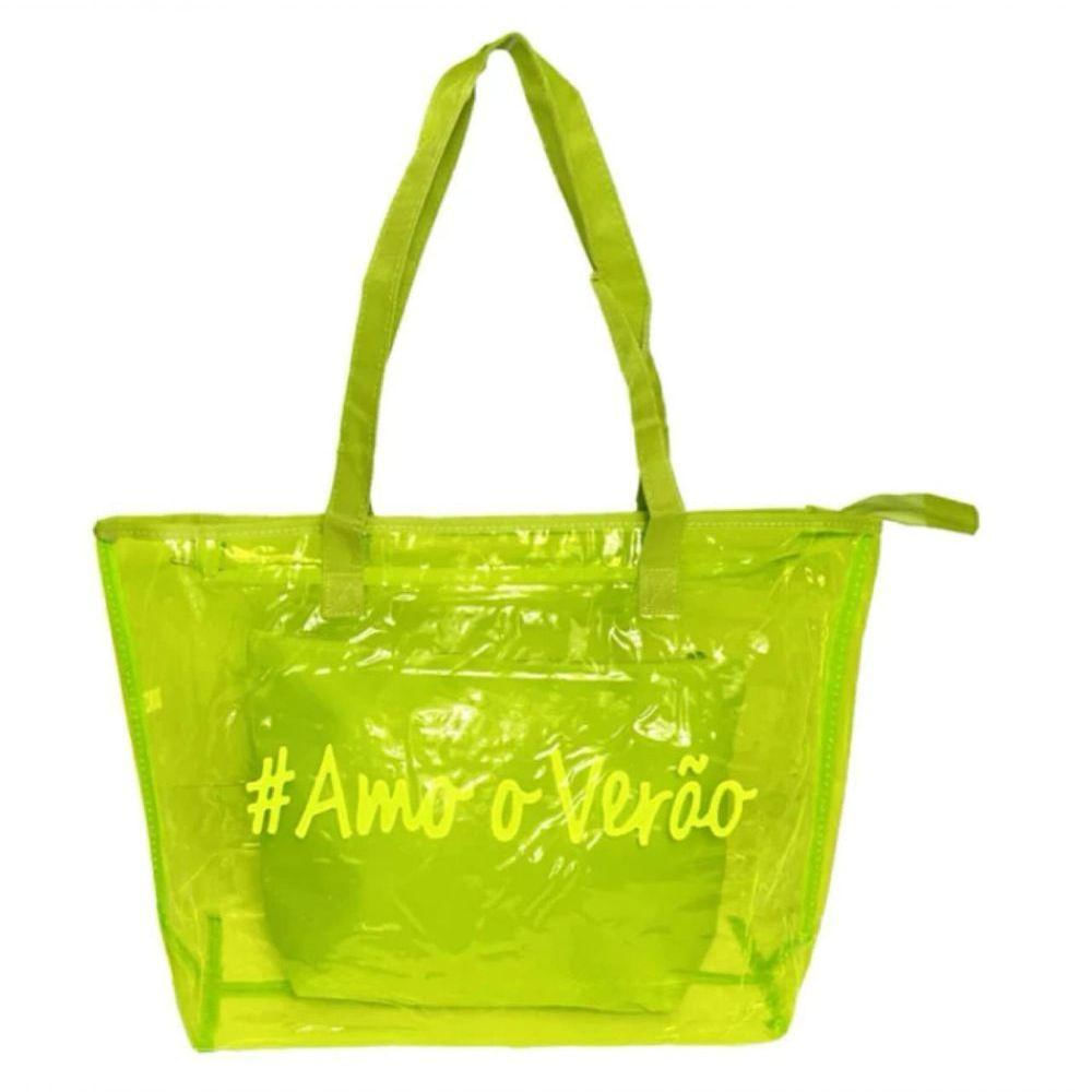 Kit Bolsa Sacola Amo O Verão De Silicone Leve De Ombro Com Alça Confortável De Praia verde Lima