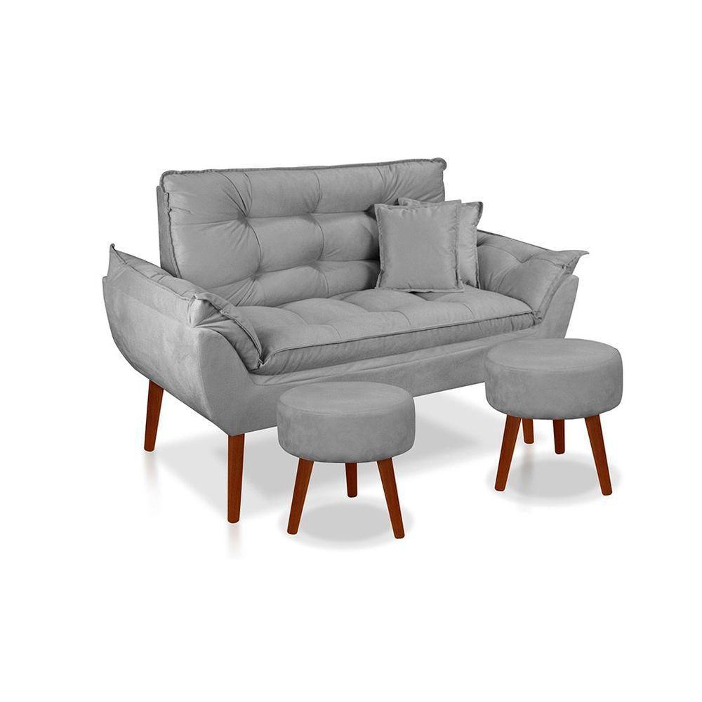 Kit C/ 01 Namoradeira Opala + 02 Puffs Redondo Danny + 02 Almofadas Suede Cinza Claro -