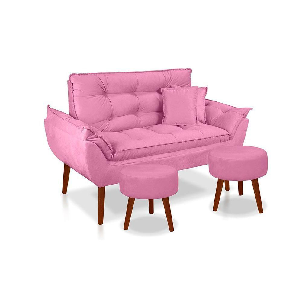 Kit C/ 01 Namoradeira Opala + 02 Puffs Redondo Danny + 02 Almofadas Suede Rose -