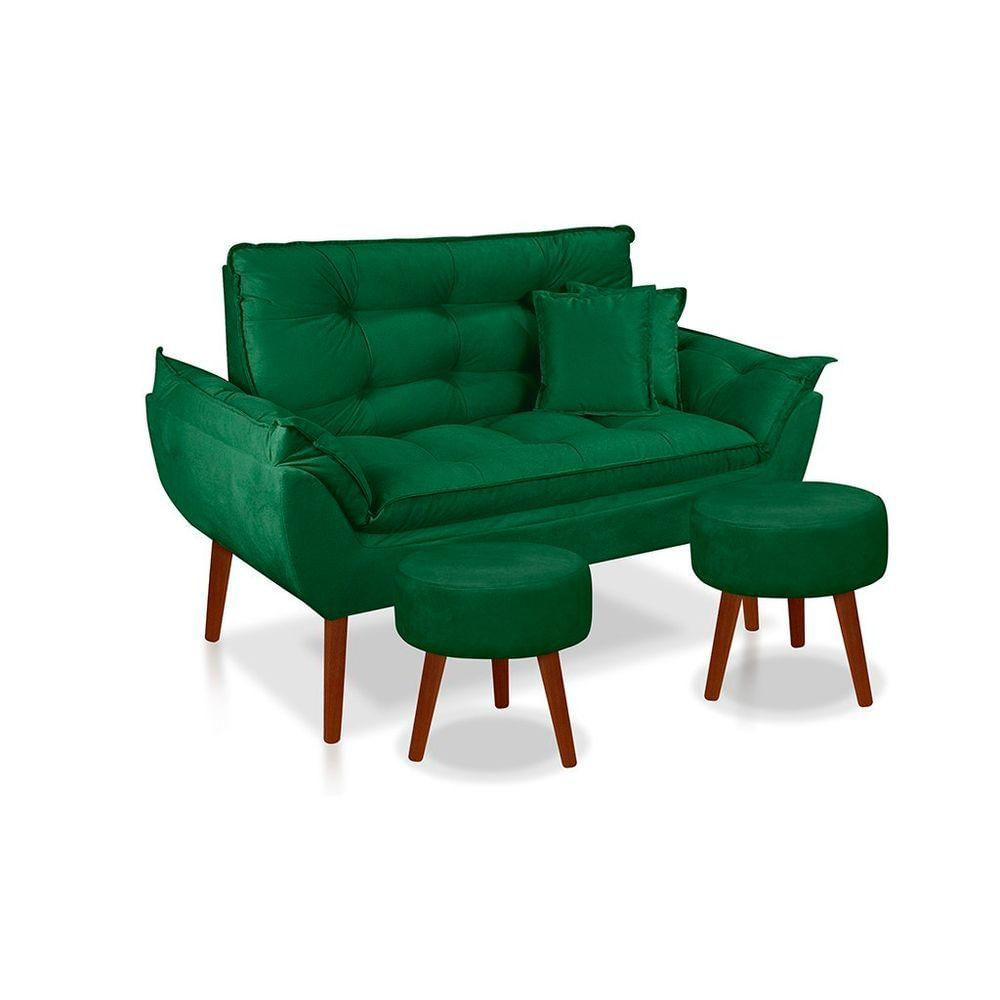 Kit C/ 01 Namoradeira Opala + 02 Puffs Redondo Danny + 02 Almofadas Suede Verde