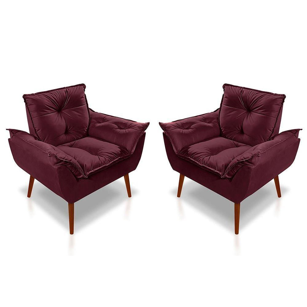 Kit C/ 02 Poltronas Opala Luxo Suede Bordo -