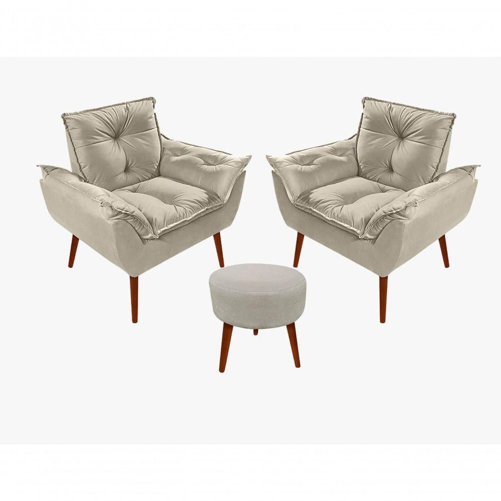 Kit C/02 Poltronas Opala + 01 Puff Redondo Danny Suede Bege -