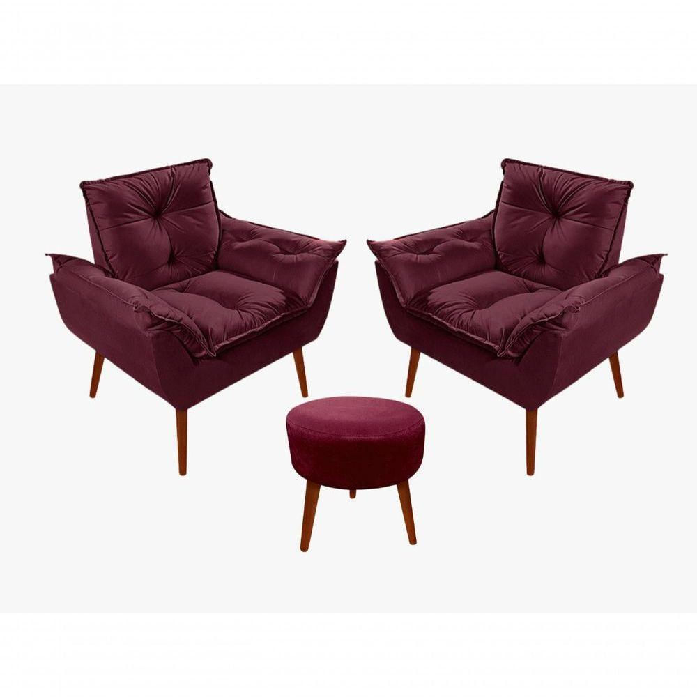 Kit C/02 Poltronas Opala + 01 Puff Redondo Danny Suede Bordô